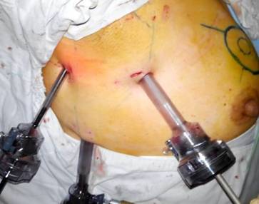 乳腔镜腋窝淋巴结清扫术时乳腔镜的放置图