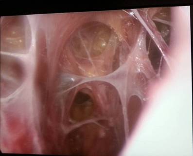 乳腔镜下基于脂溶法的腋窝淋巴结清扫术过程中腋窝精细结构图