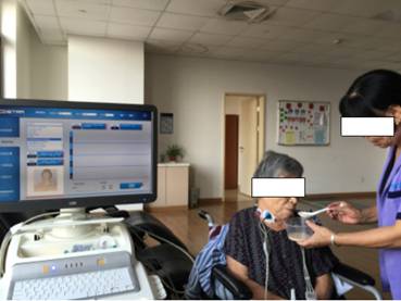 图为吞咽障碍的患者进行表面肌电图评估