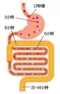 期间人体把需要的蛋白质、脂肪、糖、维生素、水等搬进来,而剩下的食物残渣将在大肠内停留十几个小时。