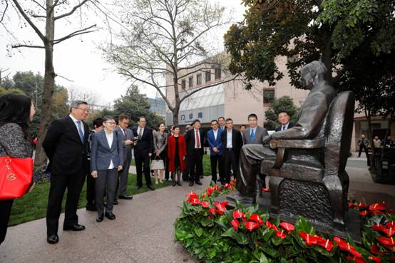 陈伟文主席一行抵达邵逸夫医院庆春院区后,首先前往邵逸夫爵士纪念公园瞻仰邵逸夫爵士铜像,并先后参观了邵逸夫医院院史馆、技能培训中心以及邵医咖啡馆。