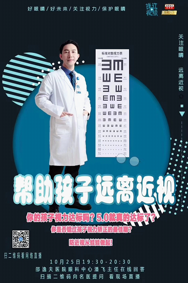 如何做好儿童青少年近视综合防控,是医院、学校、家长和孩子需要共同关注的话题,邵逸夫医院将邀请在防控近视方面有较丰富经验的眼科潘飞医师讲授“爱眼护眼 防控近视”的主题讲座,欢迎大家参加。