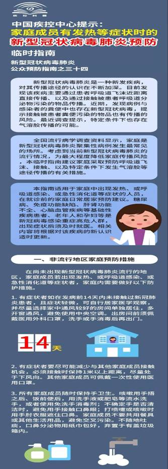 中国疾控中心提示:家庭成员有发热等症状时的预防指南