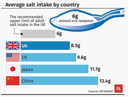 是不是流下了惭愧的口水,近些年外卖和加工食品迅猛发展,中国人餐桌的盐含量,由过去的人均9.1克增长到现在的13.4克!远远超过英国、美国西方国家。