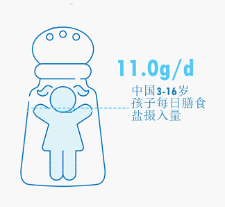 最新数据表明,中国3-16岁孩子的平均每日盐摄入量是11.0克/天,超过推荐摄入量快2倍了!
