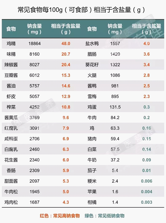 请收好这个表格,看看各种食物的含“盐”量: