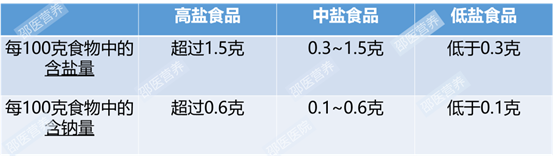 区分低盐、中盐、高盐食物