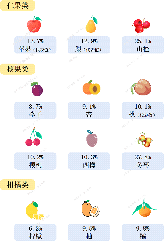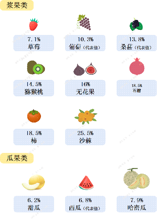 看完是不是觉得有些水果的含糖量跟自己想象的不一样,比如山楂,明明吃起来很酸,其实含糖量不少;比如人参果,尝起来没什么味道,含糖量竟然超过20%。