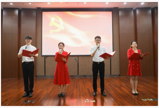 青年党员朗诵《你的名字叫中国共产党》,激励鼓舞着广大党员们践行初心、担当使命,对党忠诚、矢志奋斗,将建功立业写在基层岗位上。