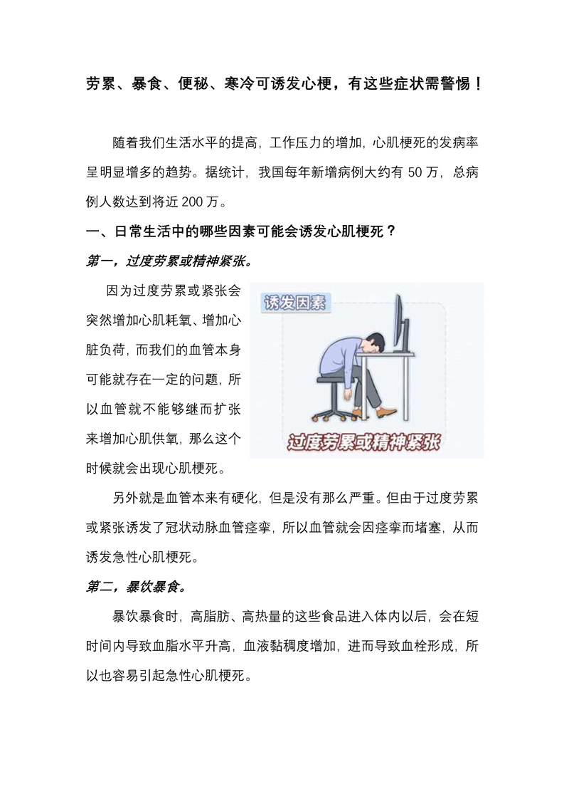 劳累、暴食、便秘、寒冷可诱发心梗,有这些症状需警惕
