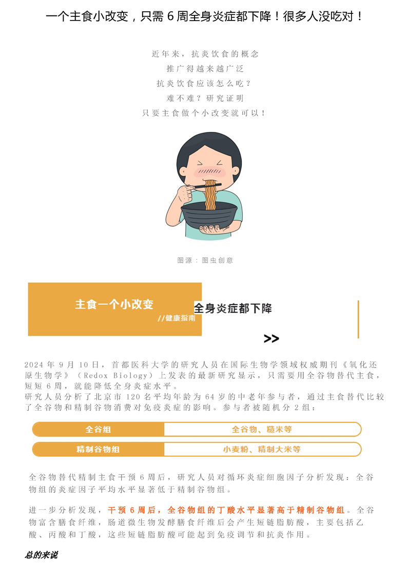 一个主食小改变,只需6周全身炎症都下降!很多人没吃对!