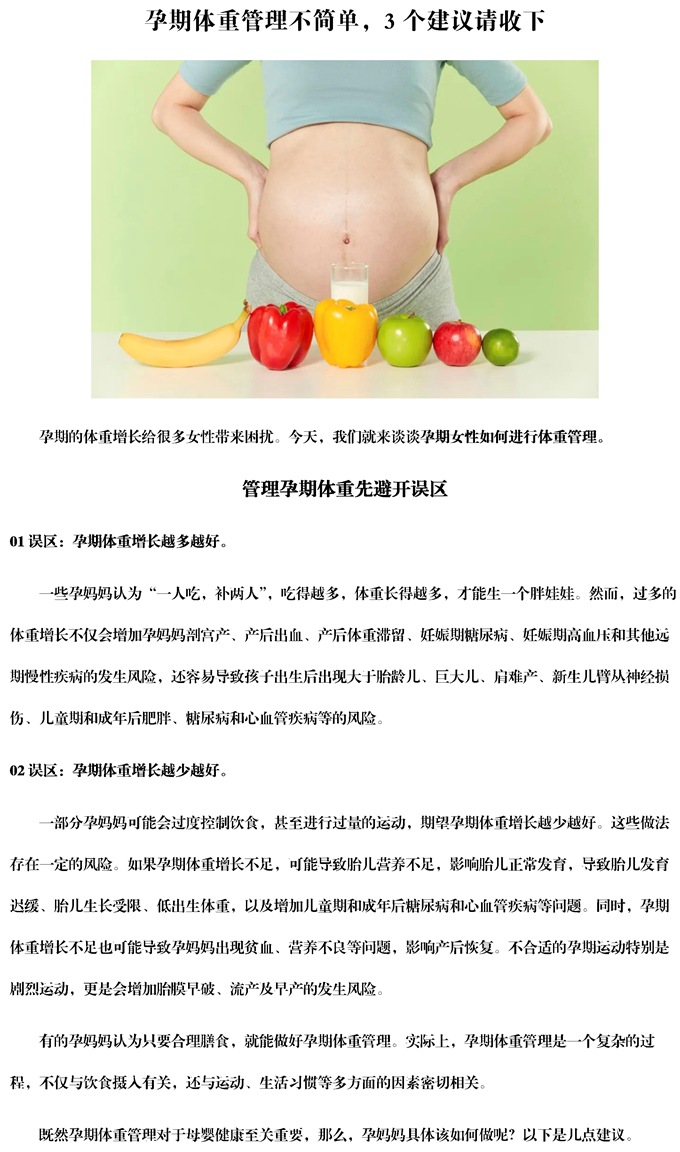 孕期体重管理不简单,3个建议请收下