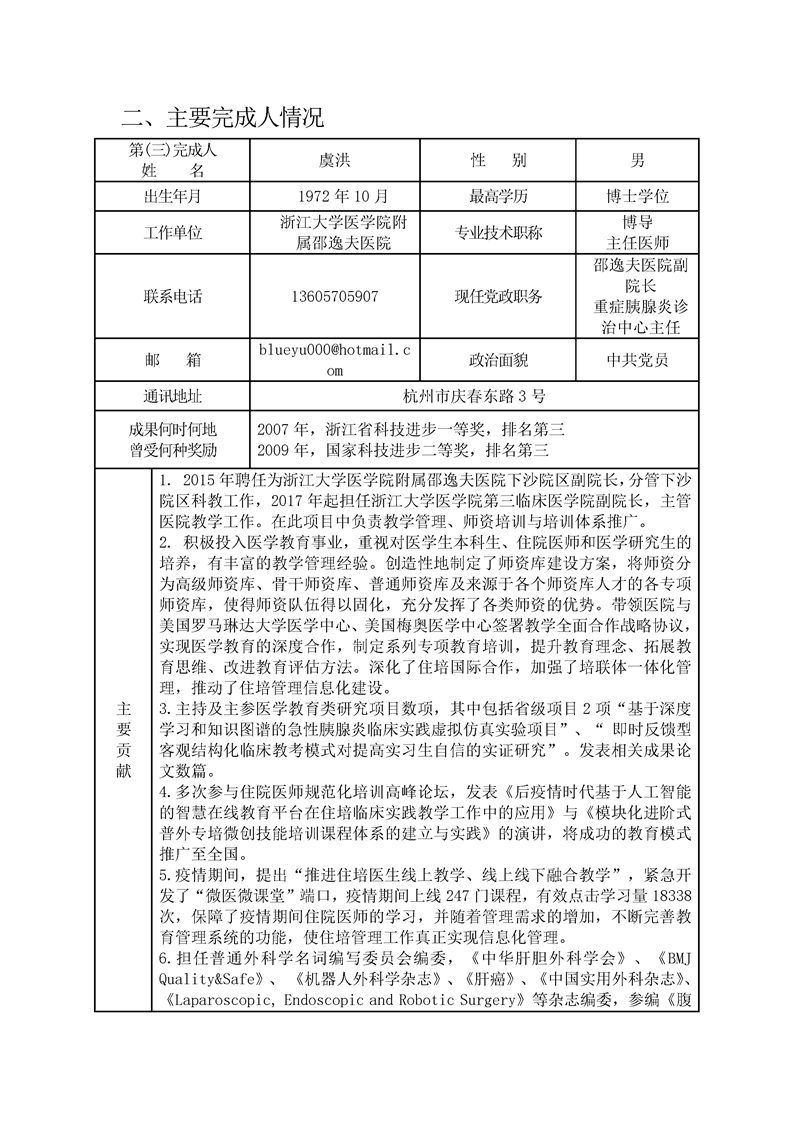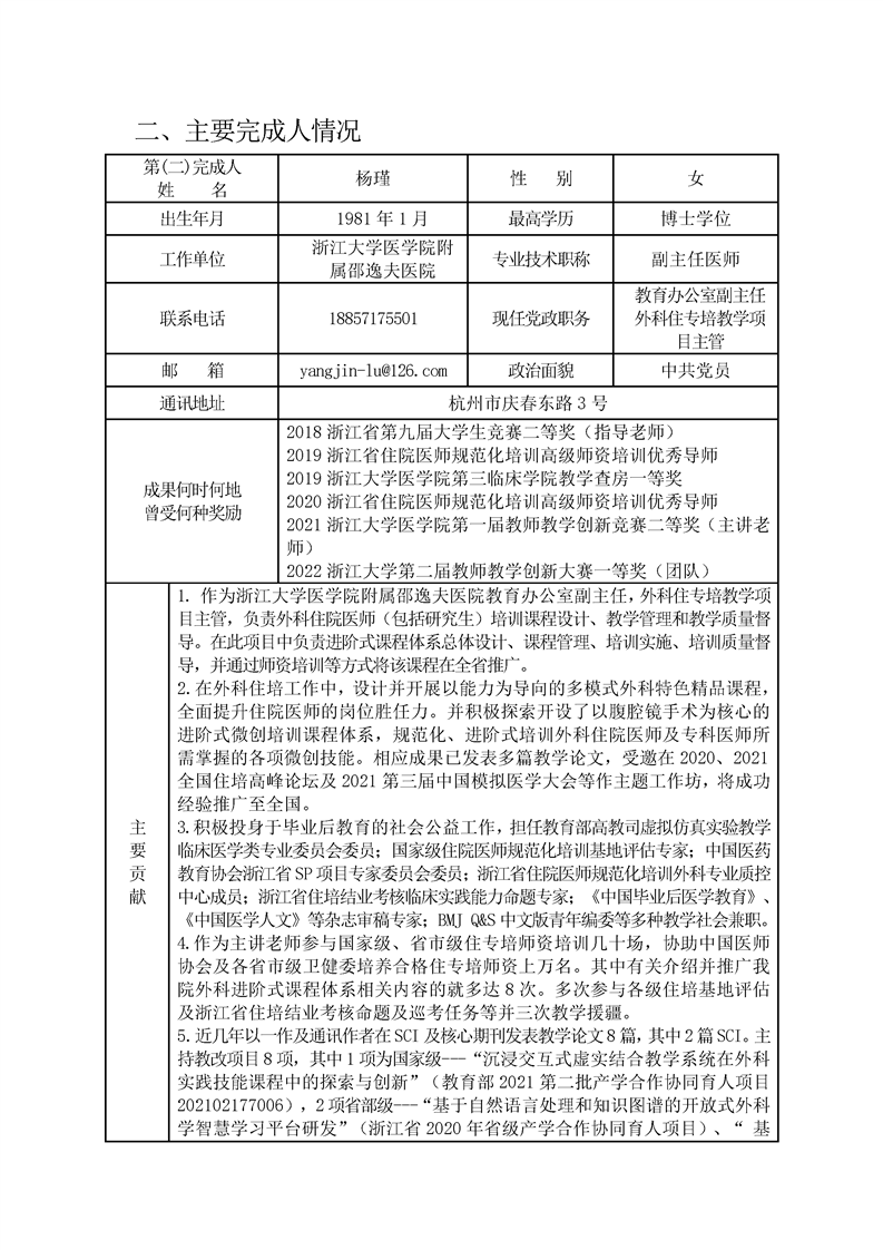 浙江省研究生教育学会教育成果奖申请书
