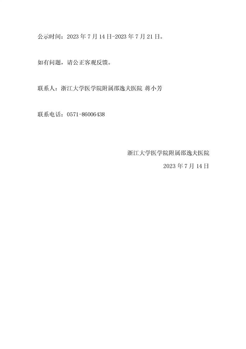 浙江大学医学院附属邵逸夫医院_关于公布2023年7月新增自主定价医疗服务项目的公示