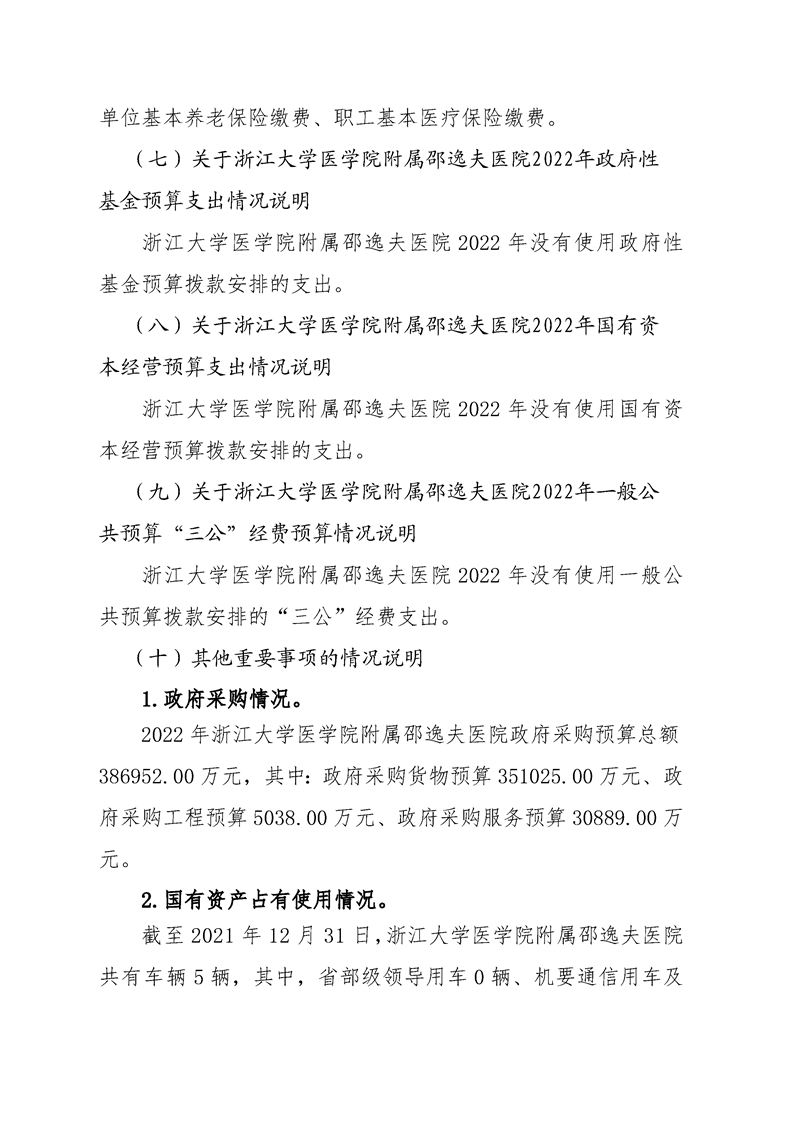 2022年度浙江大学医学院附属邵逸夫医院单位决算