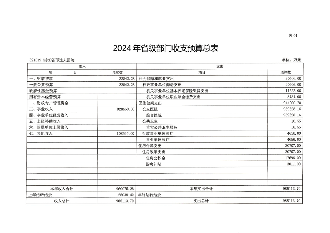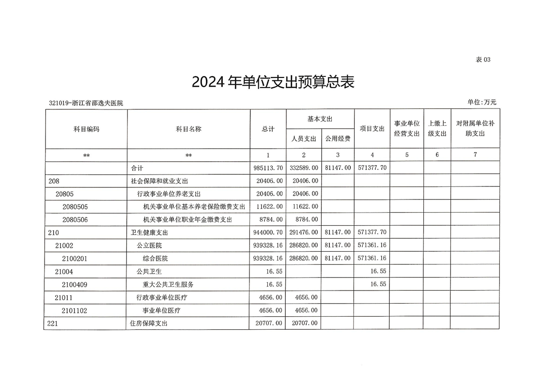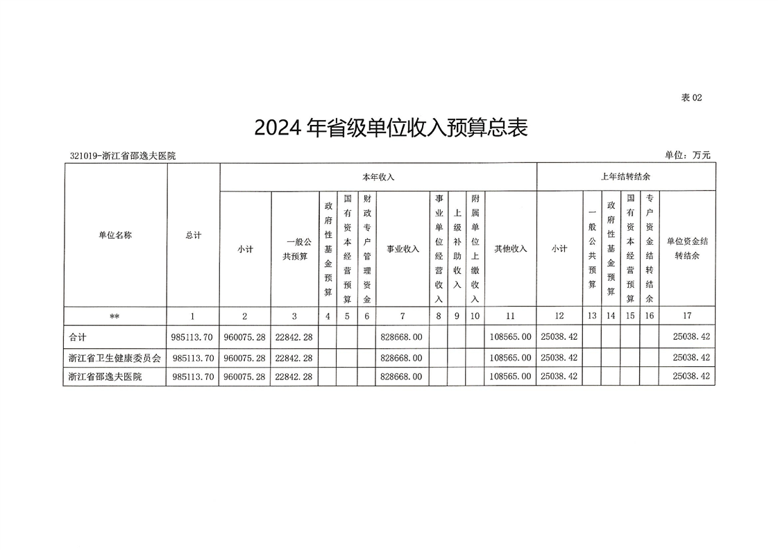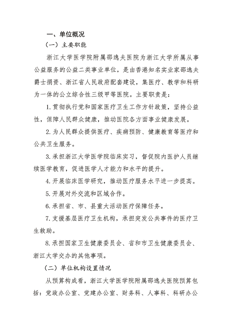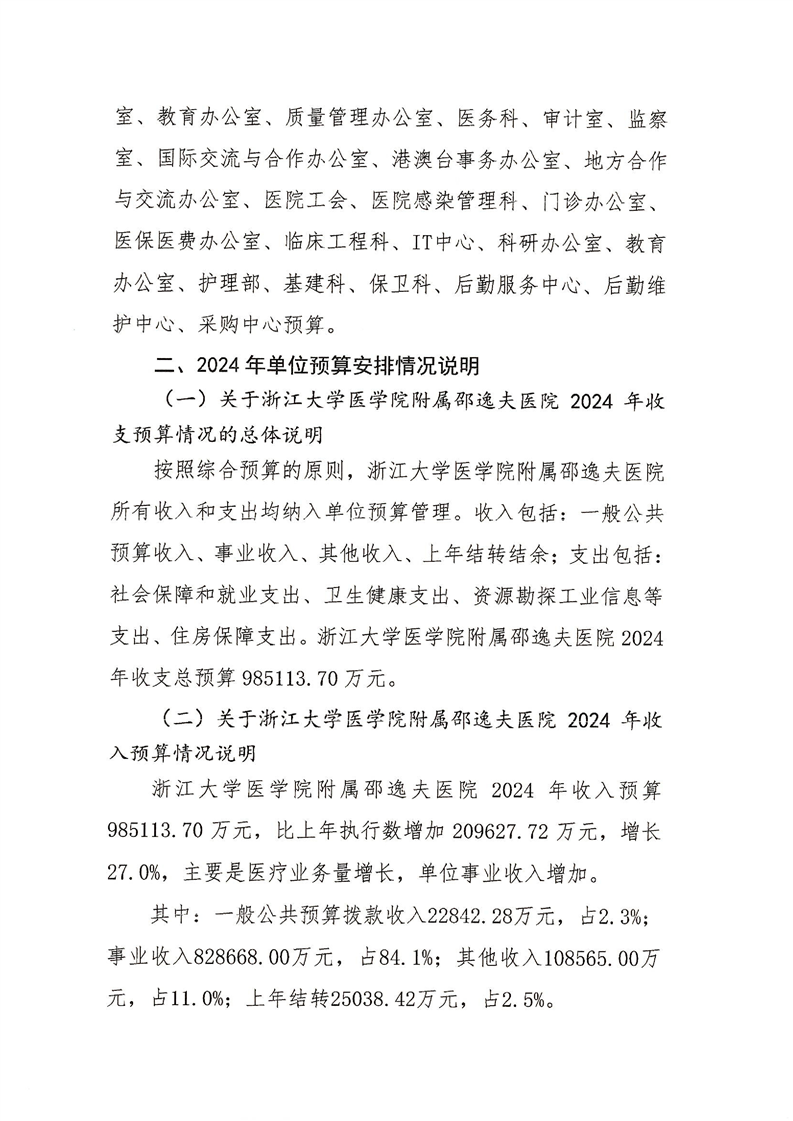 浙江大学医学院附属邵逸夫医院2024年单位预算公开