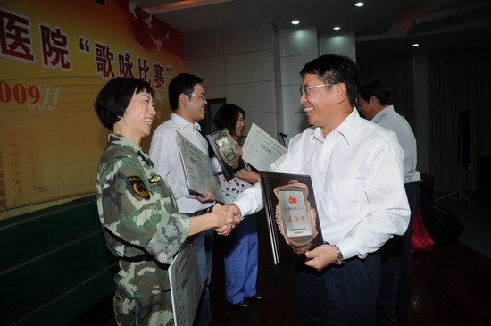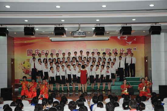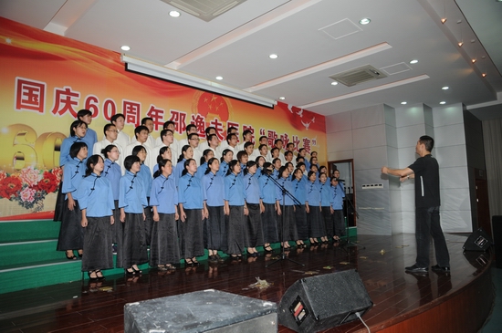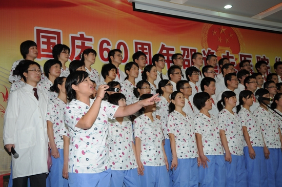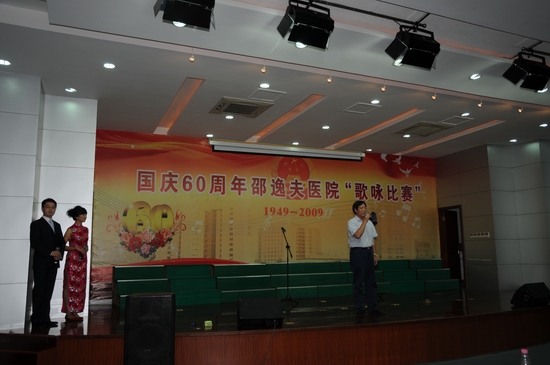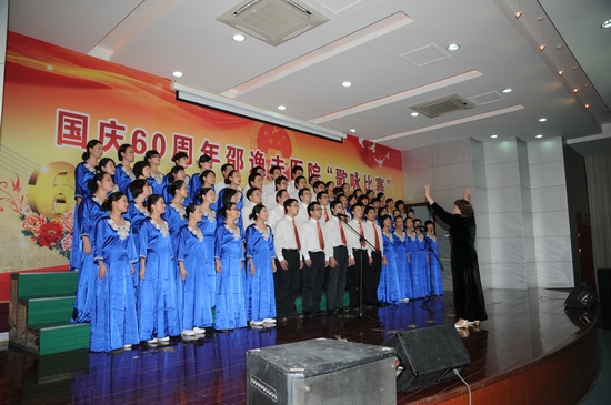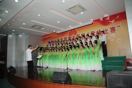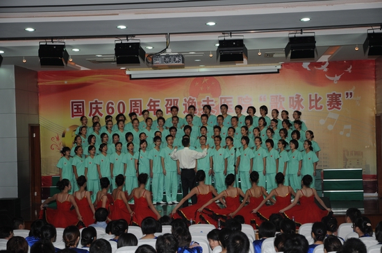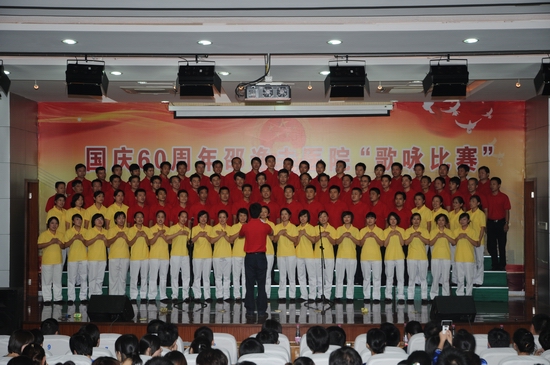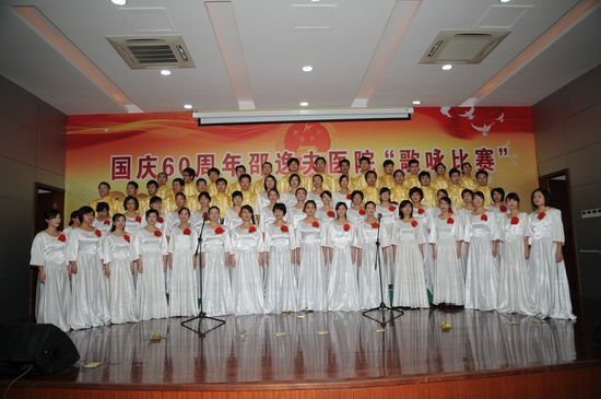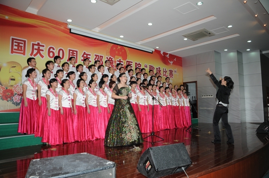 2009年9月25日晚,杭州采荷中学礼堂灯火辉煌,身着各色礼服和盛装的邵逸夫医院员工聚集一堂,庆祝祖国母亲六十华诞生日的歌咏比赛在这里隆重和热烈的上演着。全体在院的院领导和国家一级作曲谈声贤以及省艺校副教授周旭亮担任评委,全体参与演出的700余邵医人,用优美、激昂的旋律演绎了一场高潮迭起、扣人心弦、激励人心的比赛。