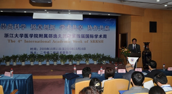 第四届邵逸夫医院国际学术周于2009年10月11日隆重开幕了。本届学术周邀请了美国等七个国家、国内8所医学院的教授专家共同参与,学术周以“崇尚科学、锐意创新、学术共享、协作共赢”为主题,通过“专家大会报告、专科交流、专题讨论、新医疗模式及运行机制研讨”等形式构成一个有机整体,内容涉及科研思路、学术精神、临床实践和医生培养等方面,由专科专场、青年医师及研究生论坛、管理研讨会三大版块组成。