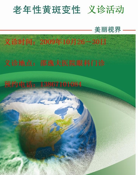 随着生活水平的提高和人均寿命的延长,老年性黄斑变性在我国的患病率已达5%,这种疾病是引起50岁以上人群重度视力丧失的主要原因之一。定期检查眼底,早期发现和治疗是预防视力严重丧失的重要手段。为了帮助广大老年眼病患者,邵逸夫医院眼科下周将开展为期一周(2009.10.26-10.30)专门针对“老年性黄斑变性”的大型义诊活动,届时以该院国内知名专家李毓敏主任医师为首的眼底病专业诊疗团队将免费为老年人提供全套眼部体检。为了保证义诊的质量和次序,每天下午只能安排30个名额,所有参加义诊的老年朋友均需提前拨打电话13867101084预约。