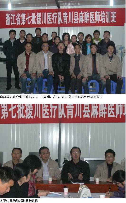 (3) 震后各级政府投入大量人力物力重建卫生系统,目前各中心卫生院新医院已建好,手术麻醉的硬件配套已基本到位,从硬件条件上说已具备开展外科手术治疗的条件。相比硬件条件,有关的麻醉和外科医生人才是极度匮乏的。如果我们能够在短时间内培训出一批能够掌握基本麻醉技能的乡镇麻醉医生,那么结合我们每个乡镇医疗队的外科、妇产科医生就可以开展一些基本的手术。这样才能使设备不闲置,医疗队外妇科专家才能有事做。这样,经过数批医疗队的带教,才能真正为青川留下一支永远不走的医疗队。