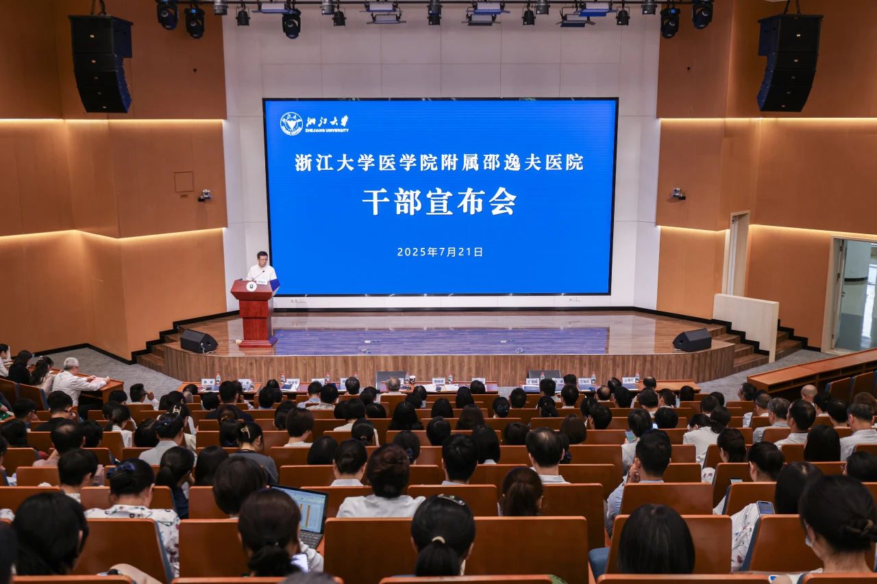 2025年7月21日下午,浙江大学医学院附属邵逸夫医院干部宣布会在庆春院区7号楼报告厅举行。浙江大学党委常委、副校长李晓明,浙江大学党委组织部常务副部长刘艳辉,浙江大学医院管理办公室主任、医学院党委副书记、党委组织部副部长顾国煜出席会议。会议由医院党委书记徐国斌主持。会上,刘艳辉常务副部长宣读了学校干部任免文件,宣布虞洪同志任浙江大学医学院附属邵逸夫医院党委常务副书记;金敏同志任浙江大学医学院附属邵逸夫医院党委副书记、纪委书记;免去陈君芳同志的浙江大学医学院附属邵逸夫医院党委副书记、纪委书记职务;免去虞洪同志的浙江大学医学院附属邵逸夫医院副院长职务。