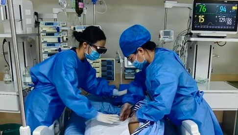 3月27日15时,一场跨越4600公里的特殊会诊在位于浙江杭州的浙江大学医学院附属邵逸夫医院和位于新疆阿拉尔的浙江大学医学院附属邵逸夫医院新疆兵团阿拉尔医院ICU同步展开。