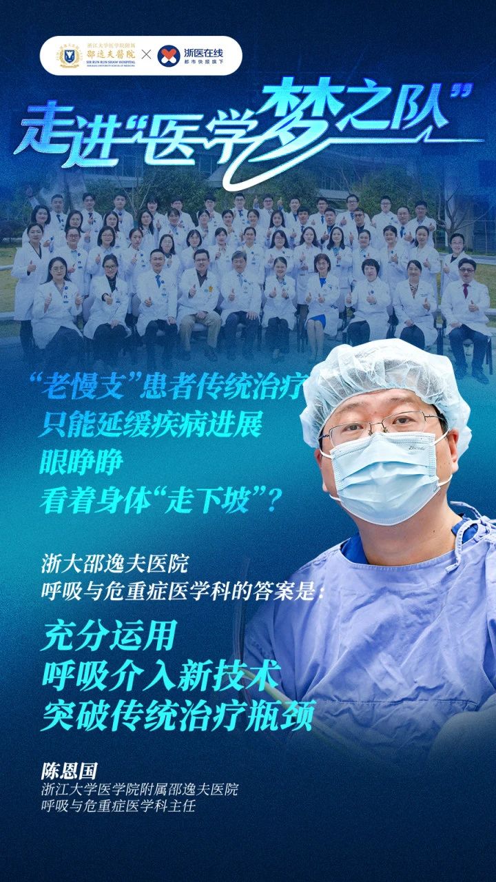 近年来,随着呼吸介入新技术的发展,在科主任陈恩国主任医师的带领下,浙江大学医学院附属邵逸夫医院(以下简称“浙大邵逸夫医院”)呼吸与危重症医学科以慢阻肺诊治作为主攻方向之一,通过系统性的临床实践与技术创新,为患者开创更多元的治疗方式,让慢阻肺患者治愈成为可能。